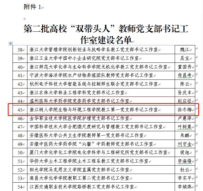 我校生环学院教工第一党支部书记工作室入选教育部第二批高校“双带头人”教师党支部书记工作室建设名单